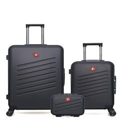 Le Lot de 3 Valises Rigides Grand Format, Cabine et Vanity ZURICH de Swiss Kopper combine design élégant, grande capacité et résistance pour tous vos voyages. Ce set complet garantit une protection optimale et un rangement efficace de vos affaires, idéal pour des séjours courts ou prolongés.Caractér