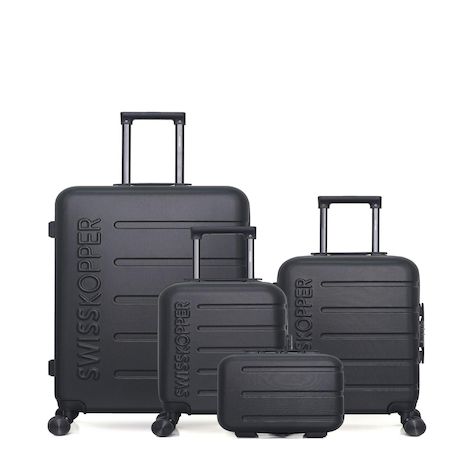 Le Lot de 4 Valises Rigides Grand Format, Cabine, Cabine XXS et Vanity AIGLE de Swiss Kopper offre une capacité exceptionnelle, une robustesse et un design moderne pour tous vos voyages. Ce set complet assure une protection optimale et un rangement efficace de vos affaires, que ce soit pour des séjo