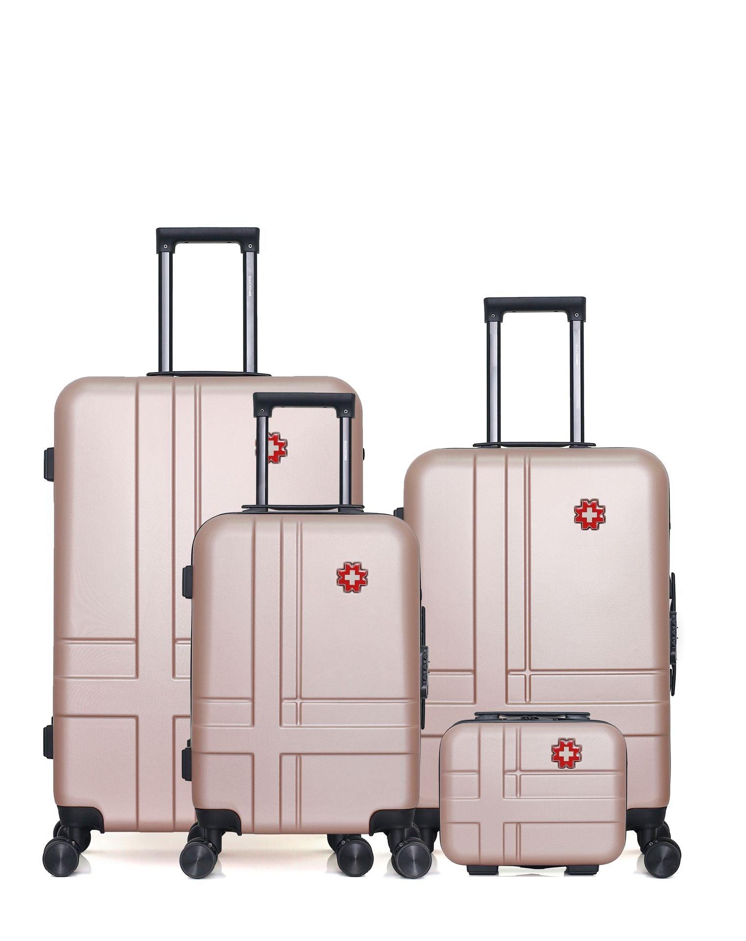Le Lot de 4 Valises Rigides Grand Format, Taille Moyenne, Cabine et Vanity USTER de Swiss Kopper offre une capacité optimale, une robustesse et un design élégant pour tous vos voyages. Ce set complet assure une protection maximale et un rangement pratique de vos affaires, idéal pour des escapades co
