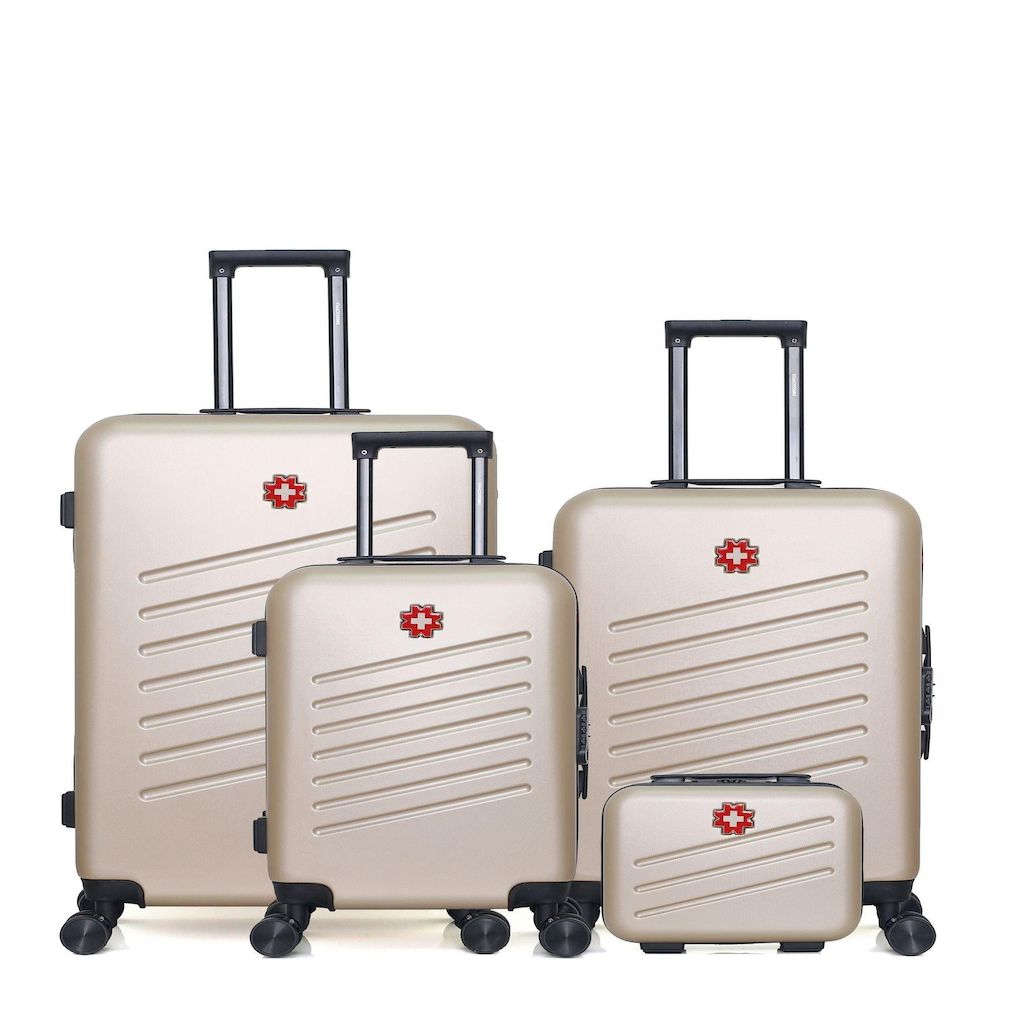 Le Lot de 4 Valises Rigides Grand Format, Taille Moyenne, Cabine et Vanity ZURICH de Swiss Kopper offre une capacité optimale, une robustesse et un design élégant pour tous vos voyages. Ce set complet assure une protection maximale et un rangement pratique de vos affaires, idéal pour des escapades c