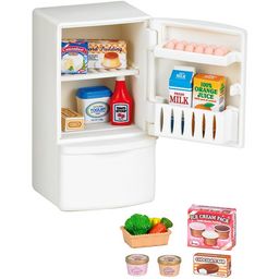 Le réfrigérateur d'Epoch d'enfance est idéal pour conserver les aliments au frais ! Désormais le lait, les légumes, les glaces, le fromage...peuvent rester au froid pour ensuite régaler tes Sylvanian ! Un objet idéal pour équiper ta cuisine ! Une vingtaine d'accessoires sont fournis afin de garnir le frigo (packs de lait et de jus d'orange, légumes, pots de glace etc...) !