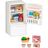 - 1 réfrigérateur et une vingtaine d'accessoires pour le garnir (packs de lait et de jus d'orange, légumes, pots de glace
