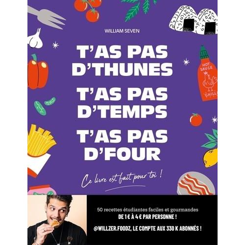 En savoir +Parce que manger ne devrait pas être un luxe, William Seven, alias @willzer. foodz, jeune strasbourgeois plein d'humour et débordant de vie, te propose ses meilleures recettes pour se faire vraiment plaisir, sans te ruiner ! Découvre 50 recettes, simples et délicieuses, pour les petits budgets qui adorent se régaler : brunchs, dips, gnocchis, risotto, pizzas, baguettes flambées, nachos, cinnamon rolls... et tout ça, sans four ! Et retrouve également toutes les bonnes astuces de William, le tout dans une ambiance fun et pop !