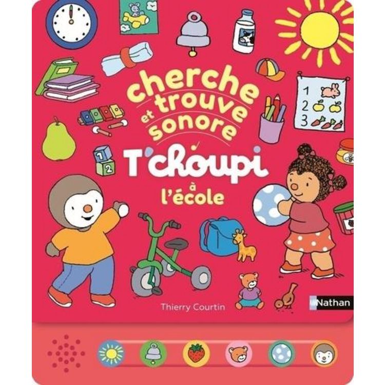 Un cherche et trouve sonore pour découvrir toutes les étapes de la journée d'école avec T'choupi ! Une façon ludique et rassurante d'aborder les différents moments de la journée en maternelle. Un livre unique qui combine cherche et trouve et comptines pour accompagner les enfants dans leur découverte de l'école. 6 grandes scènes illustrées représentent les moments clefs de la journée : le réveil l'arrivée en alte la cantine le temps calme la récréation l'activité musicale. Chaque double-page cache des éléments à repérer et propose une comptine adaptée accessible via une puce sonore. Un support idéal pour apprivoiser le rythme d'une journée d'école. Les illustrations détaillées et les comptines entraînantes permettent aux enfants de se familiariser avec leur future routine, dès 2 ans .