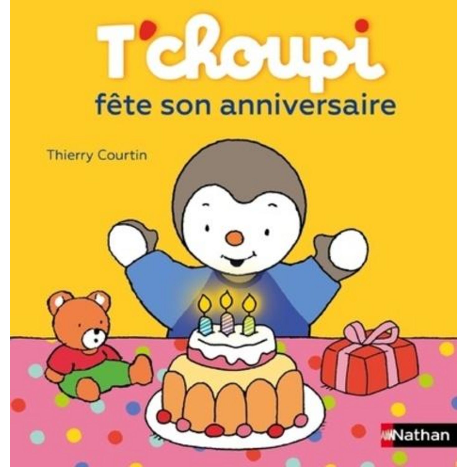 T'choupi, l'ami des petits, accompagne l'enfant qui grandit ! Des histoires qui racontent la vie des enfants de 2 à 4 ans, les grandes joies, les temps forts de la vie de famille et les petits tracas du quotidien. Grâce à T'choupi, de nombreux petits problèmes trouvent leur solution tout en douceur. Résumé de cette histoire : Aujourd'hui c'est l'anniversaire de T'choupi, il a invité tous ses amis ! Nouveau : avec votre enfant écoutez la version audio de l'histoire ! Tous les albums T'choupi sont maintenant accompagnés d'une version audio, accessible gratuitement en scannant la couverture avec l'application Nathan Live. Des livres pour les enfants de 2 à 4 ans conçus dans un format idéal pour les petites mains : coins arrondis, pages plastifiées résistantes.