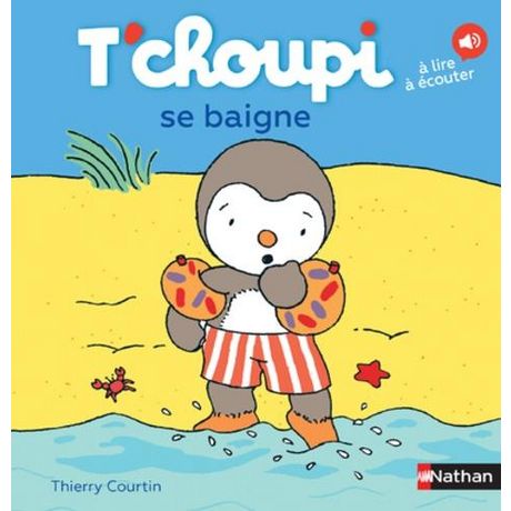 T'choupi, l'ami des petits, accompagne l'enfant qui grandit ! Des histoires qui racontent la vie des enfants de 2 à 4 ans, les grandes joies, les temps forts de la vie de famille et les petits tracas du quotidien. Grâce à T'choupi, de nombreux petits problèmes trouvent leur solution tout en douceur. Dans cette histoire, T'choupi va à la plage. Il a très envie de se baigner. Mais la mer est froide et il y a de grosses vagues ! Nouveau : écoutez la version audio de l'histoire en scannant la couverture. Tous les albums T'choupi sont maintenant accompagnés d'une version audio, accessible gratuitement avec l'application Nathan Live. Des livres pour les enfants de 2 à 4 ans conçus dans un format idéal pour les petites mains : coins arrondis, pages plastifiées résistantes.