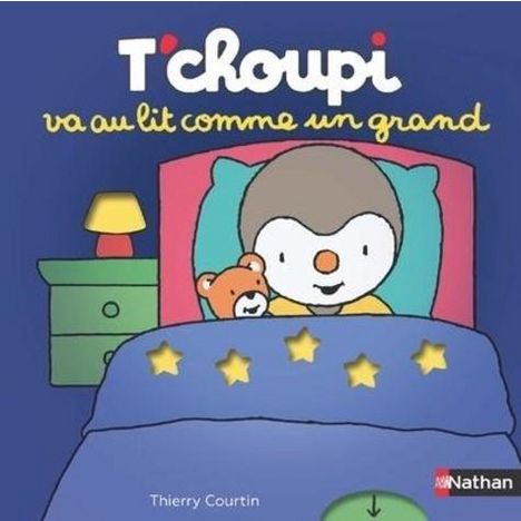 T'choupi va au lit comme un grand, la nouvelle collection d'imitation active Couche-toi comme un grand avec T'choupi et comme lui : 1- Range tes jouets 2- Choisis un pyjama 3- Brosse-toi les dents 4- Tire la chasse d'eau 5- Choisis une histoire 6- Eteins la lumière et ferme les rideaux... Bonne nuit