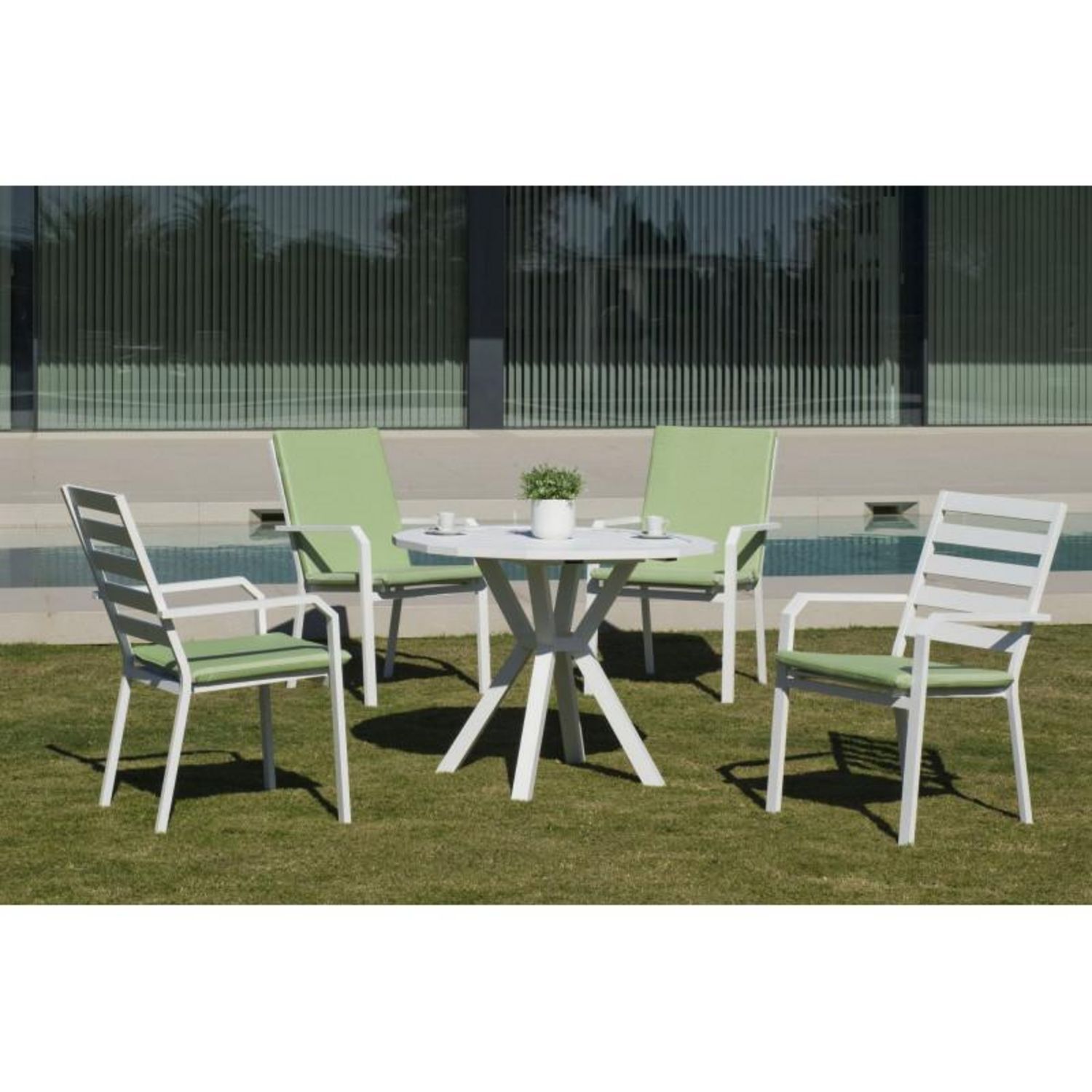 Cette table est réalisée en aluminium blanc, un matériau robuste et facile à entretenir, ce qui en fait un choix pratique pour une utilisation quotidienne. La table AYMA 110 est conçue pour offrir un espace de repas spacieux tout en restant compacte, parfait pour les espaces modernes. Le code EAN 8455704670158 permet une identification facile du produit.