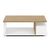 TABLE BASSE 3 NICHES ACCESS L : 91,8cm / P : 50cm / H : 36cm Meuble en panneaux de particules de 25 et 15 mm Meuble en panneaux de particules revetu d'un décor papier ou mélamine imitation suivant coloris DECORS : CHENE HAMILTON/BLANC MAT
