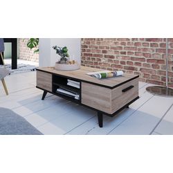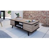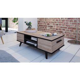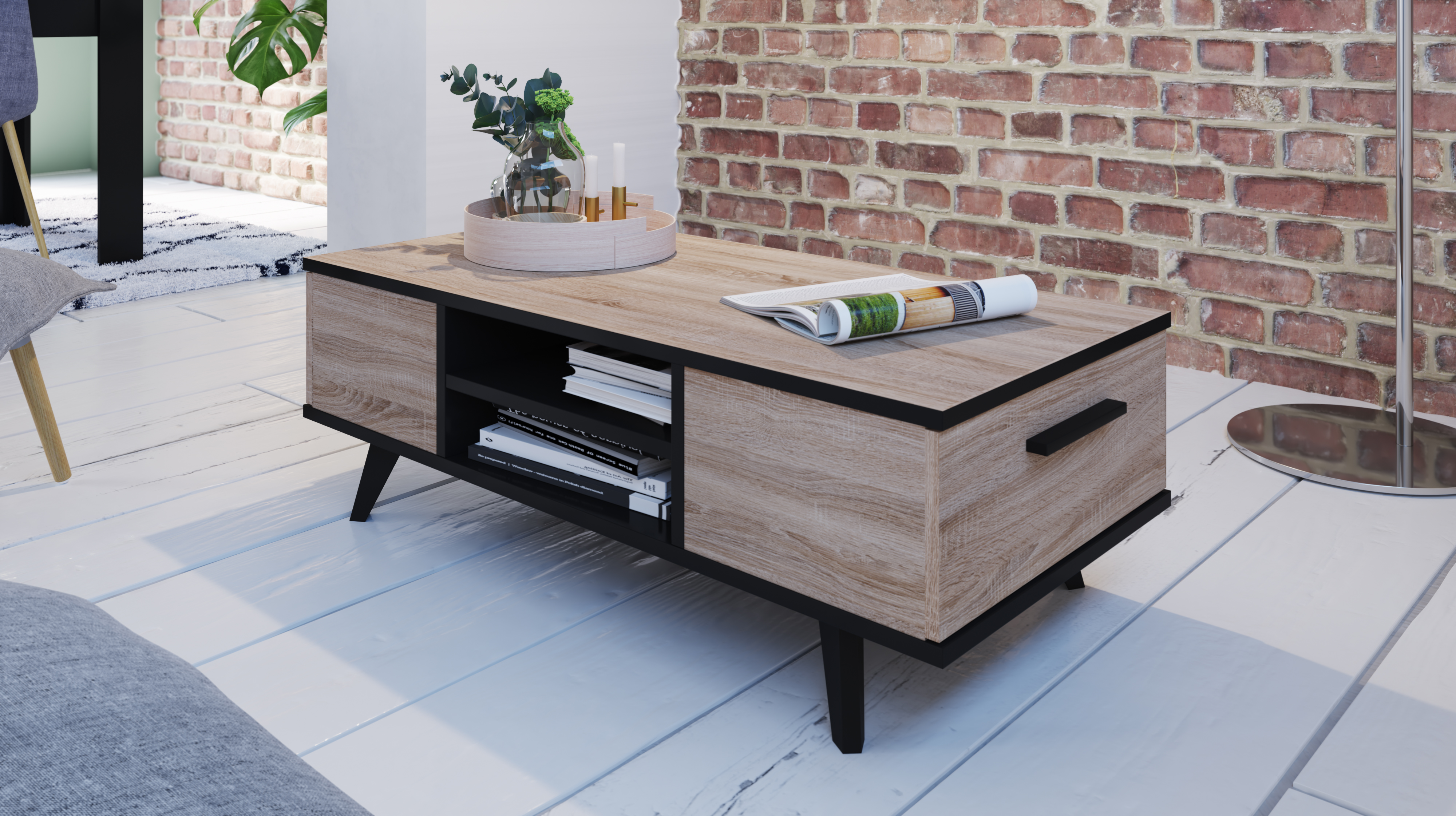 Table basse Wayne 2 tiroirs/1 rayon chêne brossé/noir mat.