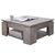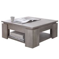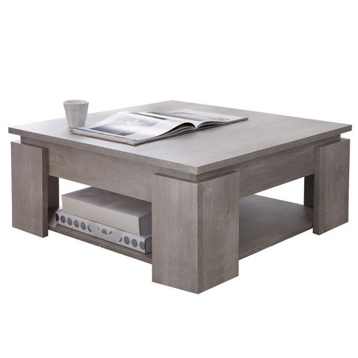 Table basse avec un revêtement en panneaux de particules et mélaminé coloris chêne clair grisé, constitué d'une niche de rangement.