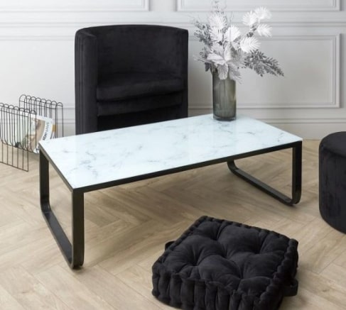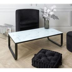 Table Basse En Verre "effet Marbre" 105cm Blanc
