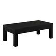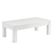 Table basse rectangulaire avec une structure en panneau de particules agglomérés écologiques E1 épaisseurs 18mm (structure) et 38 mm (le dessus), laqué (laquage + vernissage à rayons ultraviolets). Pieds MDF 88x88mm.
