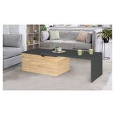 Table rotative à 360° Maryse _Matériaux: 15mm PB Mélamine _Couleur : Bois / Gris _Dimensions générales :(L x l x H) 100-146.5 x 48 x 40 cm _A monter soi-même (oui/non) : Oui _Visserie incluse: oui _Informations supplémentaires : _Dimensions de la porte : 60 x 34.5 cm _Espace entre les étagères : 16 cm _Hauteur table pliée : 36.5 cm _Hauteur table dépliée : 40 cm _Placard de rangement avec étagère
