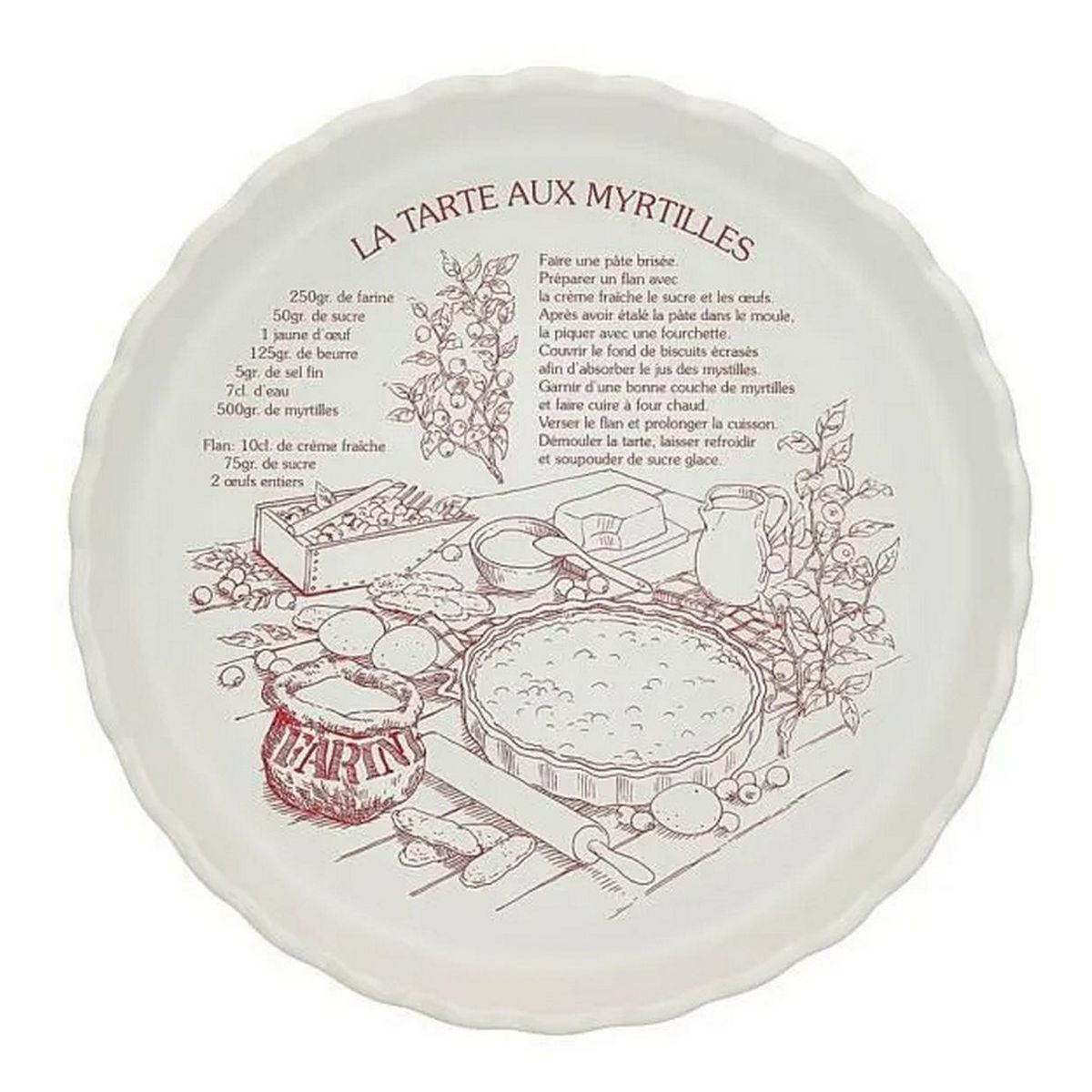 Décor recette tarte aux myrtilles. Bord ondulé. Compatible four traditionnel. micro-ondes. Un accessoire contemporain pour votre cuisine.