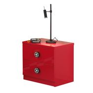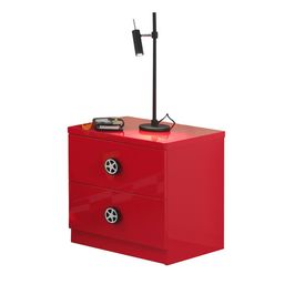 2 tiroirs, poignées en forme de roue de voiture, finition laquée rouge, panneaux de particules