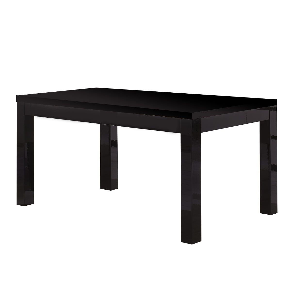 Table 160 cm avec une structure en panneau de particules agglomérés écologiques E1 épaisseurs 18mm (structure) et 38 mm (le dessus), laqué (laquage + vernissage à rayons ultraviolets). Pieds MDF 88x88mm.