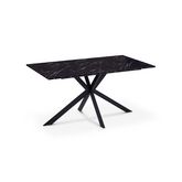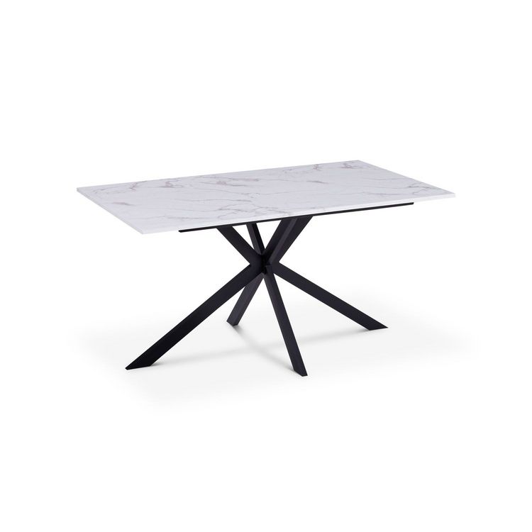 Table repas Glam 160cm plateau effet marbre blanc et pieds croisés noirs