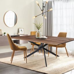 6 personnes - 160x90 cm - Plateau en panneau MDF décor chêne - Pied en métal noir