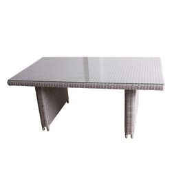 La table rectangulaire KEY WEST possède une structure en aluminium associée à une résine tressée ronde coloris gris Son plateau est en verre sécurit pour une facilité d'entretien. Cette table se marie avec les chaises KEY WEST assorties.