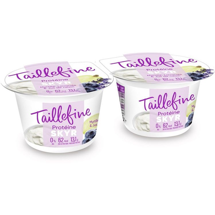 Spécialité laitière à la myrtille, jus concentré de raisin et lavande, aromatisée, avec édulcorant