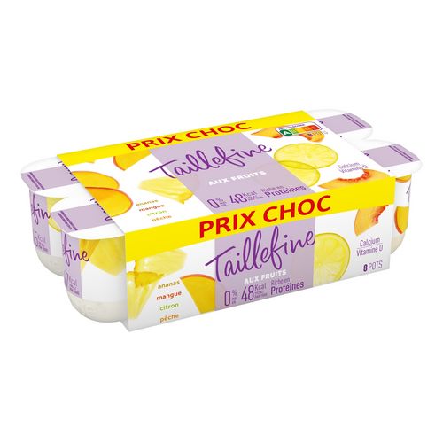 Yaourt brassé aux fruits, avec édulcorants, enrichi en vitamine D Faites-vous plaisir avec Taillefine aux fruits, une recette gourmande à la texture onctueuse, à laquelle se marient de délicieux morceaux de fruits. Et bien sûr, les Taillefine aux fruits sont 0% de matière grasse.