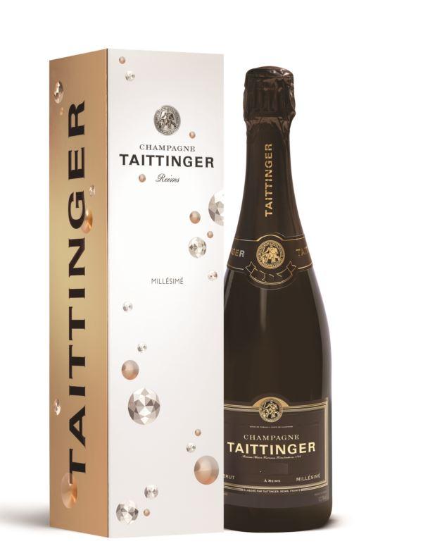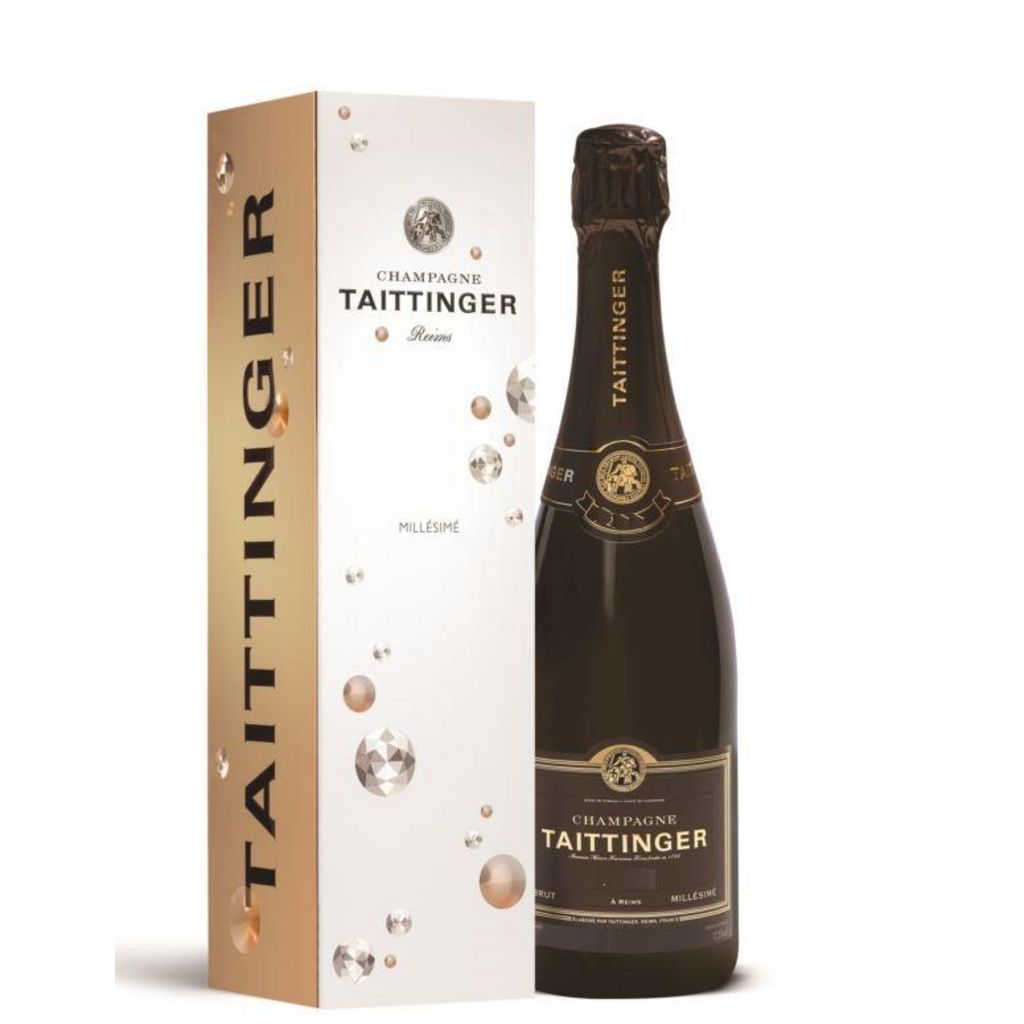 Champagne brut millésimé, Taittinger, avec une belle couleur jaune paille. Au nez, sensations fruités, épicés et de fruits secs. En bouche il est vif et nerveux, avec une belle complexité. A servir en apéritif et avec vos desserts