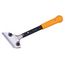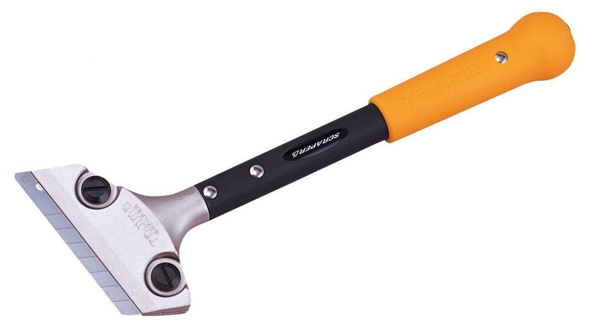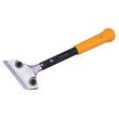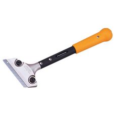 Grattoir largeur 100 mm avec manche 300 mmManche tubulaire en acier avec poignée ergonomique gainée et opercule de frappe en acier inox. Mâchoire de serrage en fonte d'aluminium avec 2 vis pour un maintien ferme de la lame. Utilise des lames de cutter de 18 mm. Fourni avec 3 lames.