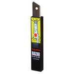 Kit 3 pièces haute : - Mesure ABS antichoc magnétique avec enveloppe caoutchouc et amortisseur fin de course. Ruban ultra rigide en acier avec traitement anti-abrasion et anti-reflets. Face supérieure blanche à graduation horizontale, face inférieure jaune à graduation verticale, dizaines rouges. Crochet magnétique fixé sur contreplaque par 3 rivets. Agrafe ceinture et dragonne. - Cutter Quick-Back en ABS léger et résistant avec inserts caoutchouc antidérapant. Bouton poussoir double fonction : la partie arrière (rouge) fonctionne comme un cutter standard autobloquant et la partie avant (noire) fonctionne comme un couteau de sécurité. Ergot arrière permettant d'ouvrir les cartons sans risque de coupes malencontreuses, et de marquer le pli lors de la pose de moquettes ou revêtements de sol synthétiques. Extrémité avant de la glissière fine et trempée, s'utilise comme tournevis d&rsquo,appoint. - Distributeur de 10 lames Razar Black 18 mm (OFFERT). Trempe et affûtage japonais pour un tranchant en fil de rasoir avec revêtement antifrictions améliorant la résistance dans le temps.