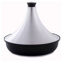 Tajine en aluminium brossé compatible avec tous les feux dont l'induction. Dimension 28 cm de diamètre.