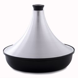 Tajine en aluminium brossé compatible avec tous les feux dont l'induction. Dimension 32 cm de diamètre.