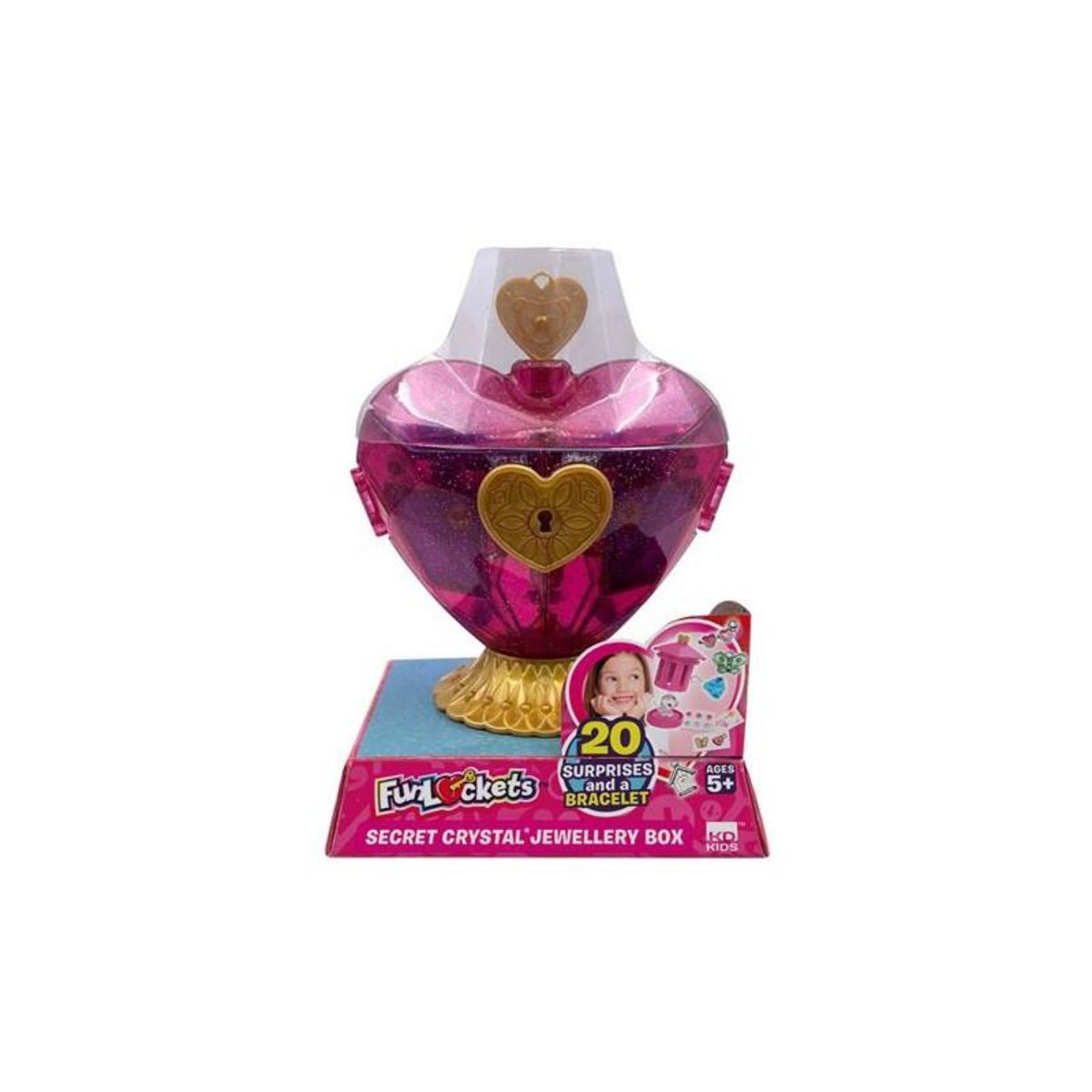 Découvrez la boîte à bijoux Funlockets Crystal Cœur, un jeu d'imitation captivant pour enfants. Ce coffret mystère renferme plus de 20 surprises dont des charms pailletés, un diamant clé et des accessoires parfumés, offrant une expérience ludique de découverte progressive grâce à son système de clés incluses.