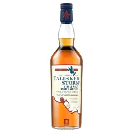Talisker est le seul single malt scotch whisky élaboré en bord de mer, sur les côtes de l'île de Skye, une des îles les plus reculées et les plus sauvages d'Écosse, qui présente néanmoins un de ses plus beaux paysages. Peu de whiskys racontent l'histoire de leurs origines aussi bien que Talisker. Talisker est la plus ancienne - et la seule - distillerie toujours en activité de l'île de Skye, au bord du Loch Harport. Elle bénéficie d'une vue splendide sur les monts Cuillin. Son whisky éponyme est un single malt séduisant, sucré, généreux, facile d'accès et qu'il est difficile d'oublier, tout comme l'île de Skye. Talisker Storm offre à celui qui le boit toute sa splendeur maritime, sa rudesse sauvage et son assurance. Le bouquet est puissant, frais et il gagne en complexité, tel une tempête emportant tout sur son passage. Vient ensuite un caractère malté doux, tandis que les fruits rouges mûrs laissent place à un goût de fumée, d'embruns et à une explosion poivrée. En dégustation, le milieu de bouche est moelleux et riche, puis très épicé : une onctuosité soyeuse enveloppe alors le palais et s'allie aux arômes de noisette fumée pour épouser les notes plus épicées. La finale est de longueur moyenne et procure une rétro-olfaction persistante et onctueuse, dans laquelle vient se manifester le parfum subtil des braises de tourbe brûlée. Savourez le goût poivré, doux et iodé du Talisker Storm sec ou diluez-le dans un peu d'eau. Talisker Storm est le cadeau idéal à offrir aux amateurs de Talisker et de single malts fumés.