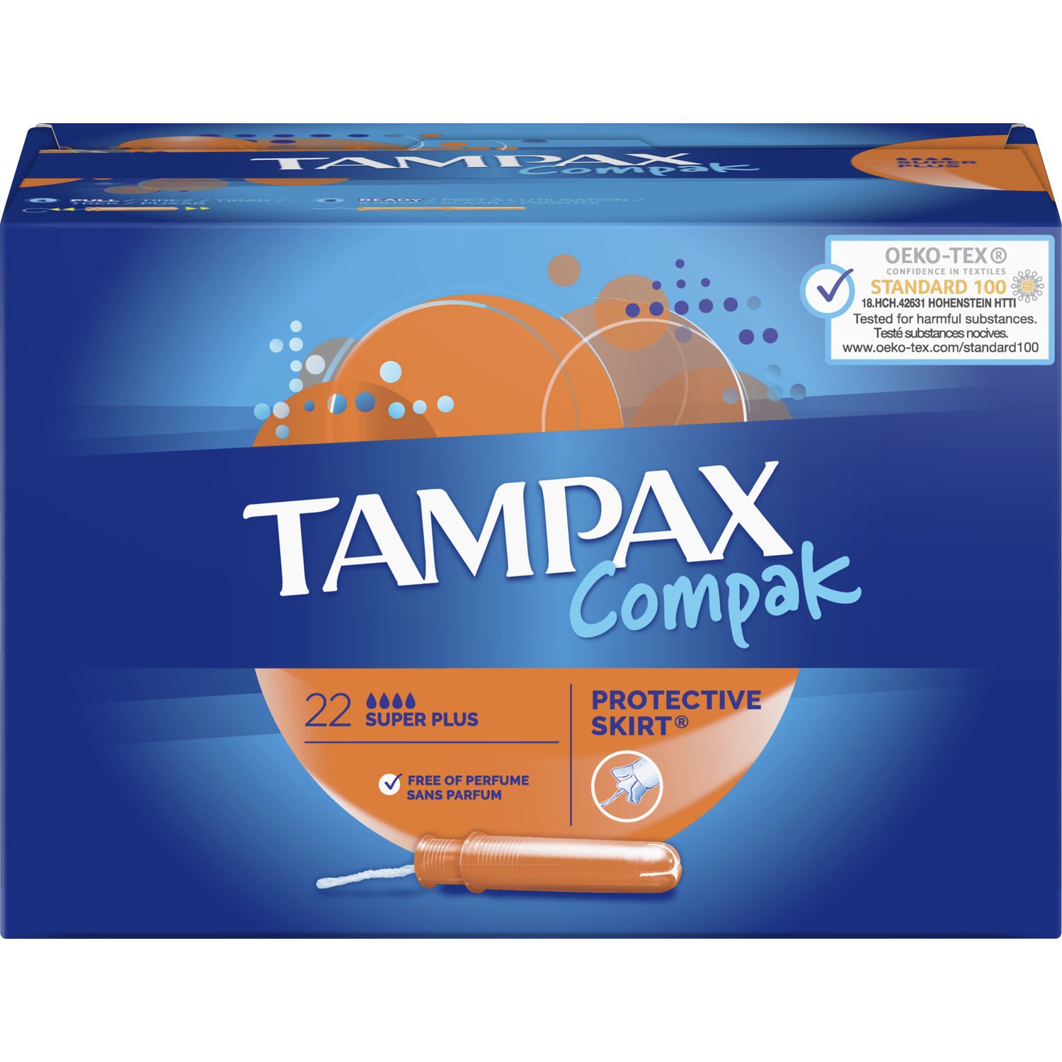 Tampax Compak Super Plus Tampons Applicateur x22 Les tampons Tampax Compak Super Plus vous offrent une protection en toute discrétion pour les jours de flux abondant. Les tampons Tampax Compak possèdent un applicateur en plastique compact et discret et sont dotés d’un embout arrondi pour une insertion facile et confortable. Les canaux d’absorption absorbent directement le flux à l’extrémité supérieure du tampon et le retiennent à l’intérieur. De plus, leur jupette anti-fuites aide à prévenir les fuites pour une protection en toute confiance. Les tampons Tampax Compak ont été testés sous contrôle gynécologique. Ils ont également été contrôlés de manière indépendante par Oeko-Tex pour la détection de substances nocives. Une protection sûre pour que vous vous sentiez libre de vos mouvements. Tampax Compak sont les meilleurs tampons de la gamme Tampax pour les flux très abondants. Essayez Tampax Pearl Compak, la meilleure protection de la gamme Tampax. Pour en savoir plus sur nos produits, rendez-vous sur notre site Web.