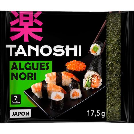 Les Algues NORI sont des algues séchées et grillées, incontournables dans la cuisine nippone. Elles permettent l'élaboration des sushis ou de parfumer de nombreux plats (salades, riz blanc …)