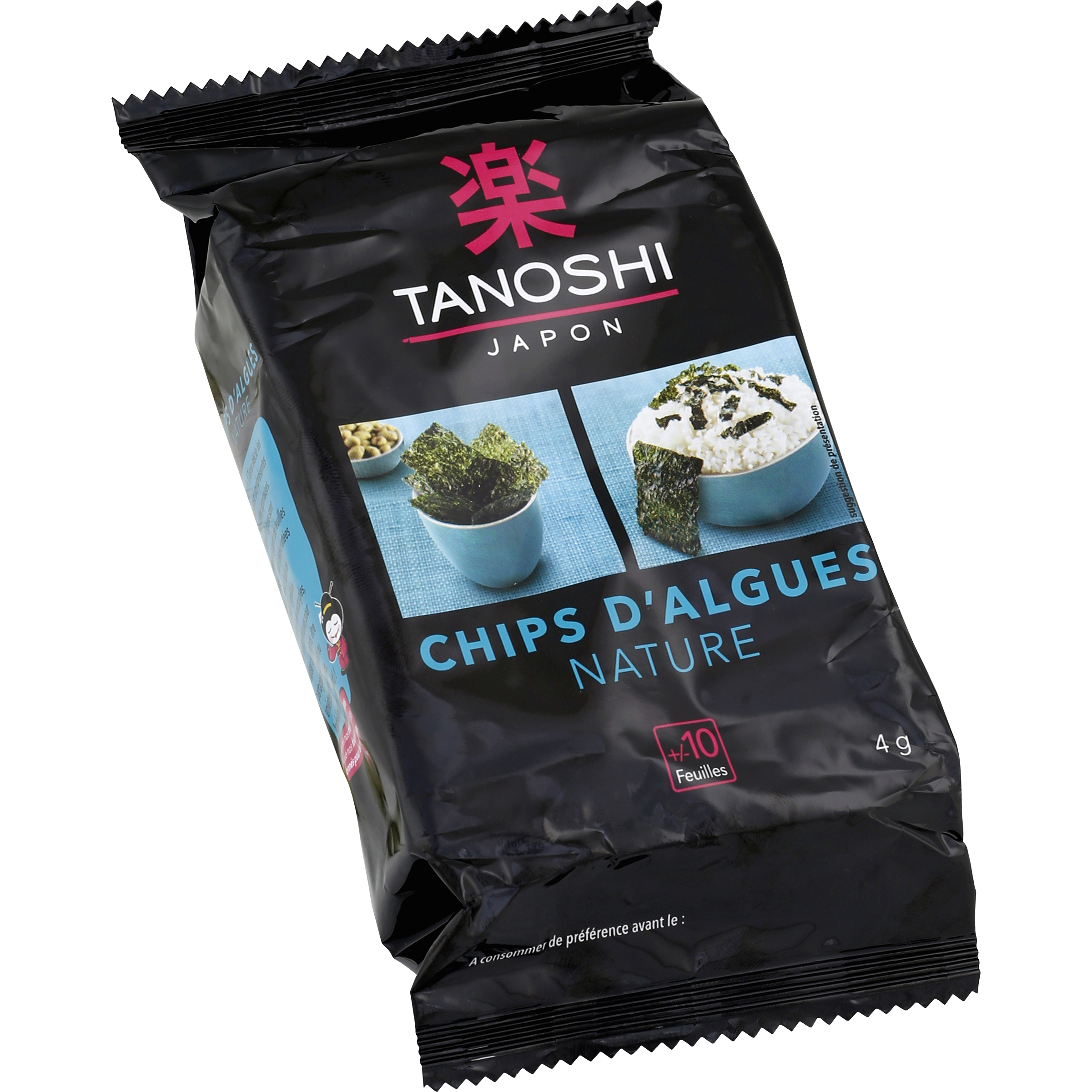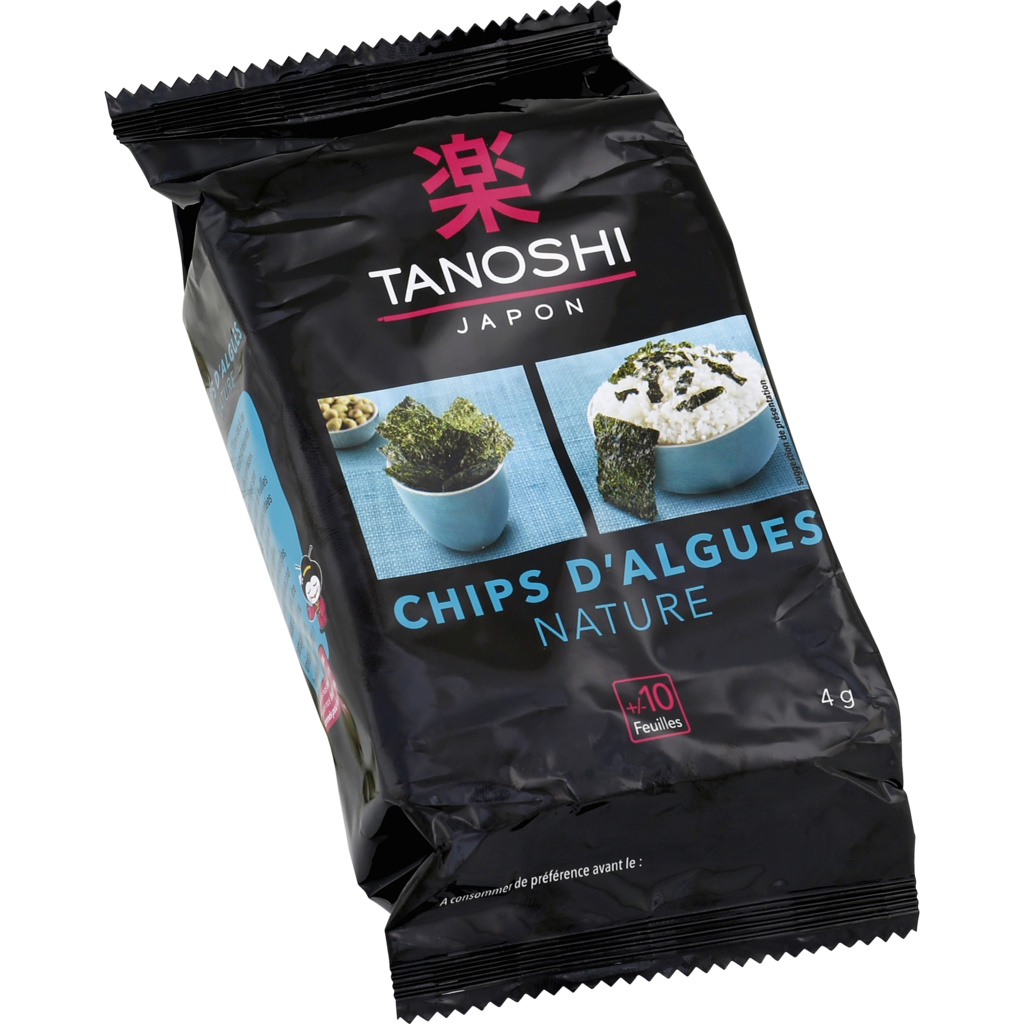 Depuis le XVIIe siècle, les algues sont omniprésentes sur les tables japonaises. Les chips d'algues sont obtenues à partir de feuilles d'algues nori déshydratées aspergées d'huile de tournesol et grillées. Découpées en rectangles, elles sont pratiques pour réaliser des onigiris, être partagées à l'apéritif ou émiettées sur vos plats.