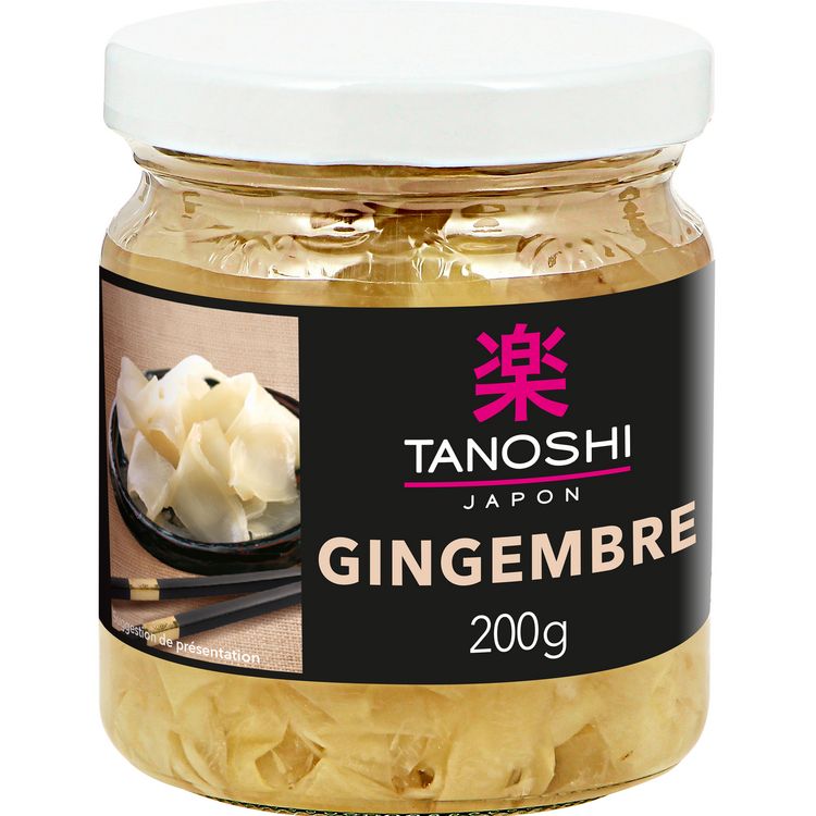 Condiment incontournable de la cuisine japonaise, le gingembre est utilisé surtout émincé dans les potages, les marinades et les courts-bouillons. Il sert aussi d'assaisonnement pour les poissons et les sushis.
