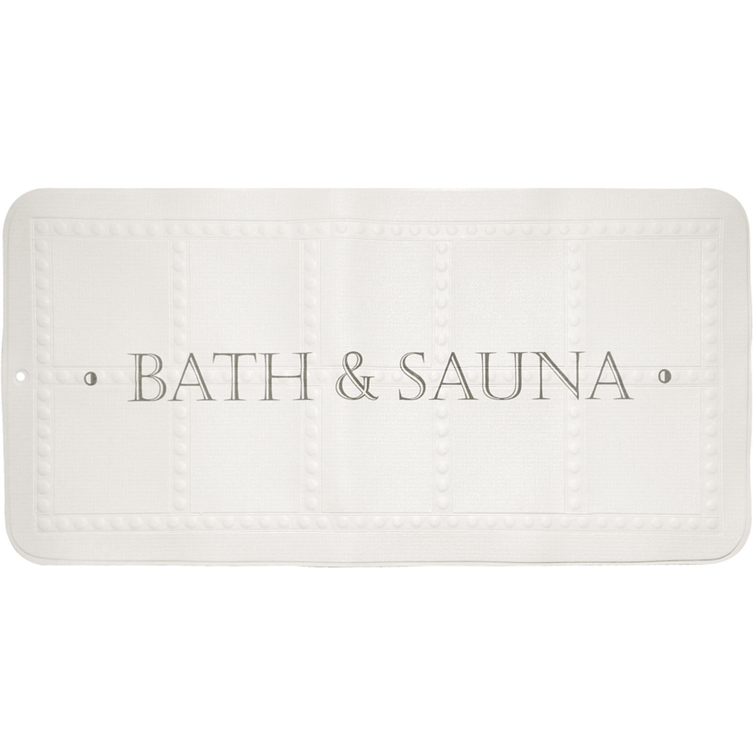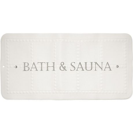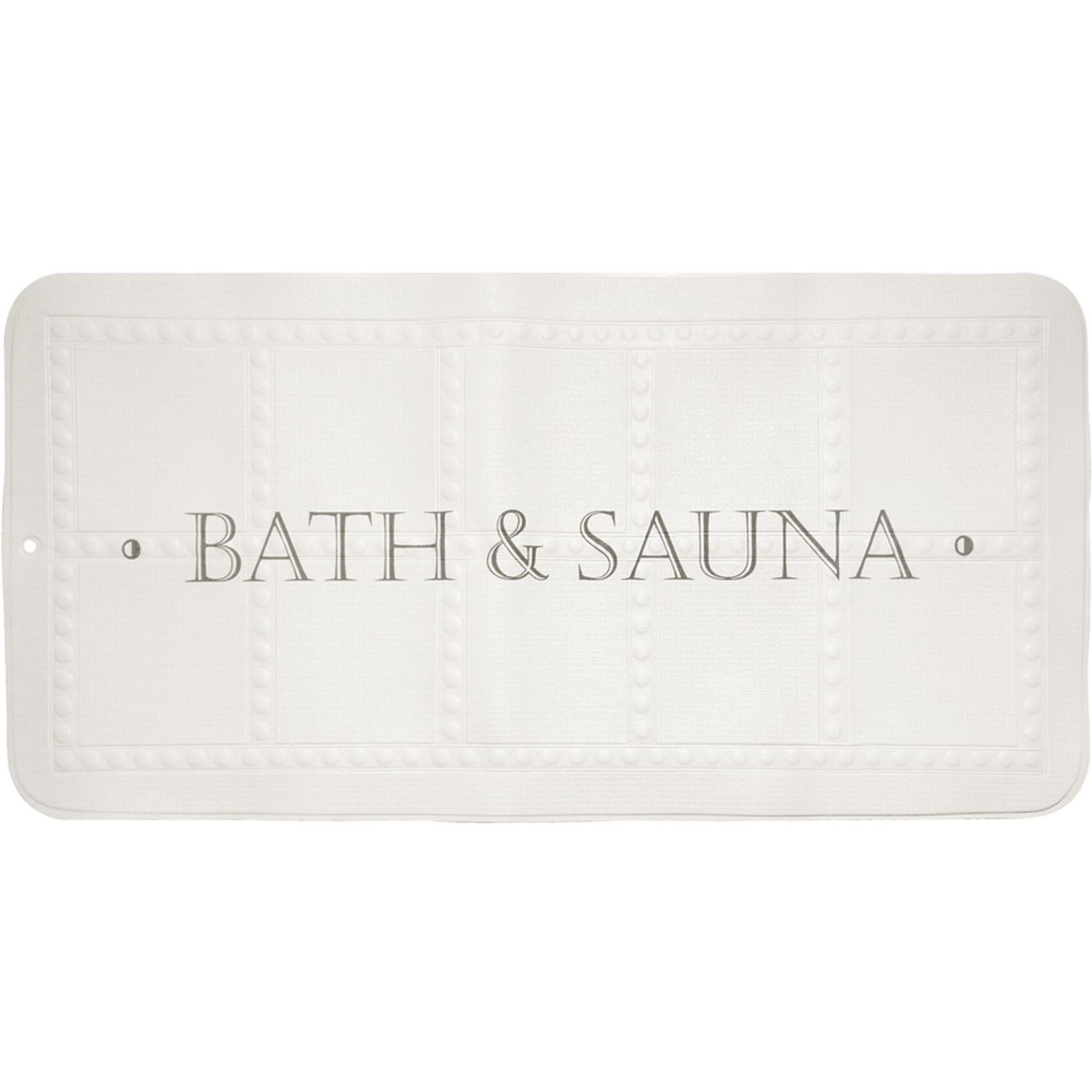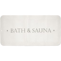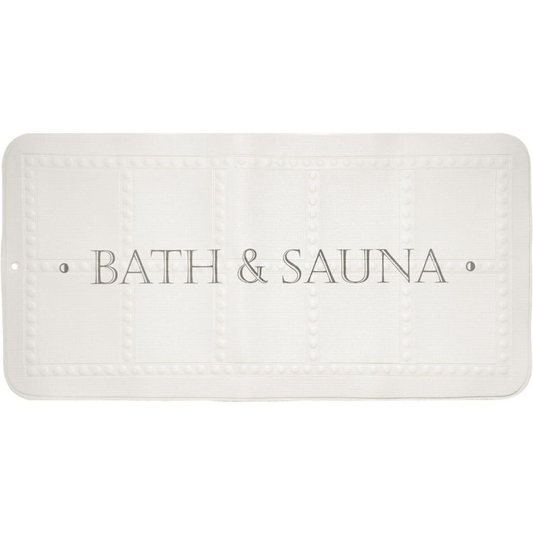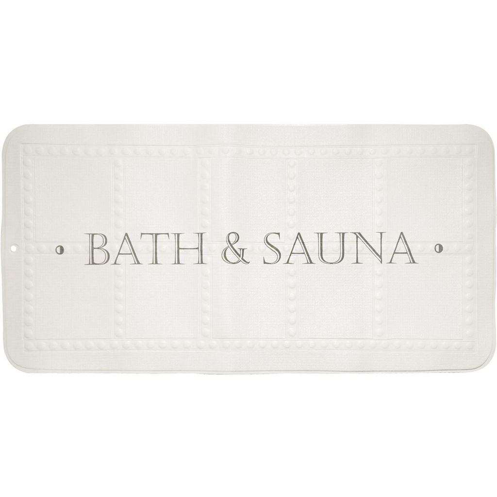 Tapis de bain antidérapant imprimé BATH&SAUNA, blanc et gris. Tapis de bain antidérapant 195 ventouses, composé de mousse de PVC.