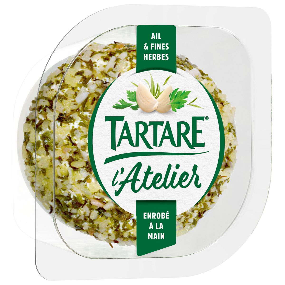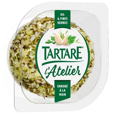 "Retrouvez tout le savoir-faire TARTARE dans sa nouvelle gamme de fromages enrobés à la main : l'intensité de l'ail & des fines herbes alliée au fondant du fromage. Idéal pour se faire plaisir au quotidien !"
