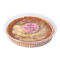 Une pâte sucrée pur beurre à bord cannelé submergée d’une purée de framboise, recouvert d’une garniture maison réalisée à base de noix de coco, le tout saupoudré de noix de coco rappée.