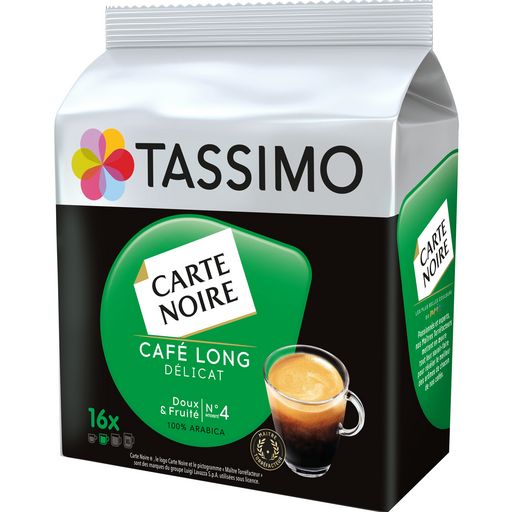TASSIMO Carte Noire Café Long Délicat est un café allongé au goût doux et fruité. Intensité 4.