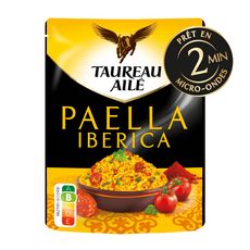 Riz long grain étuvé précuit à la vapeur (77%), haricots verts (6%), chorizo Ibérique (5%) (viande de porc Ibérique, sel, paprika, ail, épices, dextrine, dextrose, protéines de viande, émulsifiant (E-450i, E450iii, E-451i, E452i, E452ii), sucre, conservateurs (E-250, E252)), sauce tomate (concassées de tomates (3.2%), ail, huile de tournesol), poivrons rouges grillés (3.6%), huile d'olive, sel, farine de riz, épices (0.4%) (paprika, curcuma), arômes naturels, préparation de légumes (0,2%) (maltodextrine, légumes en poudre (poireaux, oignons, carottes), sel, extrait de levure, sucre, huile de tournesol, poivre blanc, laurier), émulsifiant: E-322. Conditionné sous atmosphère protectricePeut contenir du lait.
