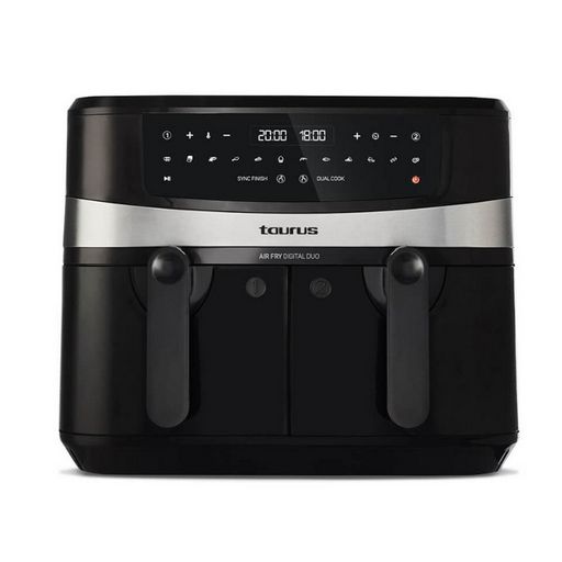 Taurus AIR FRY DIGITAL DUO Friteuse sans huile Air Fry Digital Duo Taurus 973980000 pour préparer deux plats simultanément avec des températures et des temps de cuisson différents ou identiques. - Type de produit : Friteuse sans huile.Puissance : 2200 - 2600 W.Capacité 9 L : 4,5 L dans chaque panier