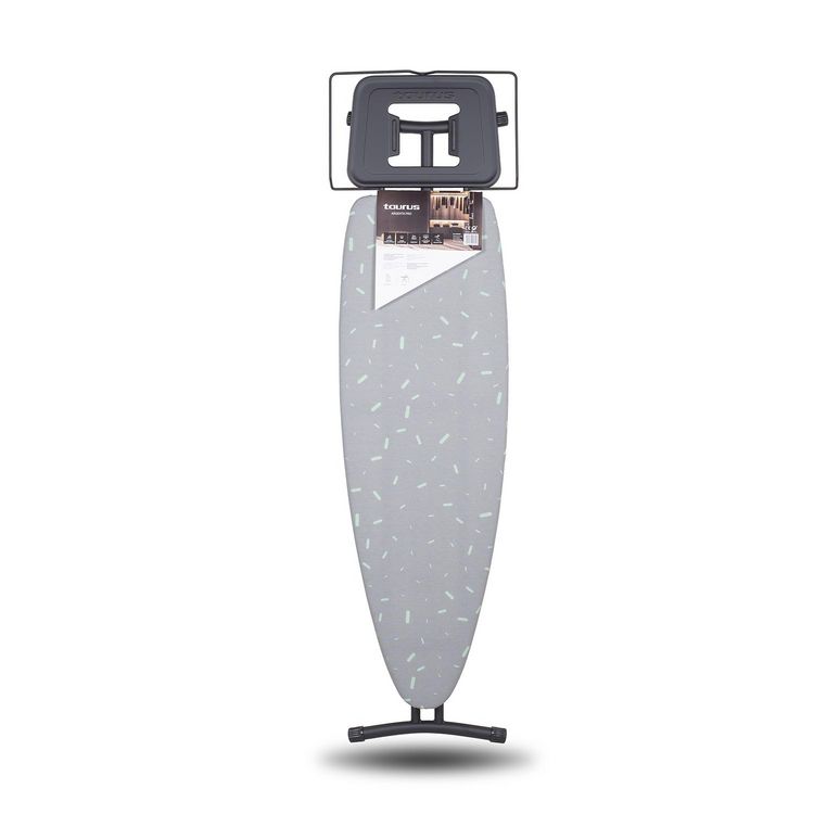 Taurus ARGENTA PRO La planche à repasser Argenta Pro dispose d'une surface de plateau de 124 x 40 cm. - Support adapté pour centrale vapeurSurface du plateau : 40 x 124 cmRepose fer 45x26 cmRéglable en hauteur jusqu'à 93 cmHousse 100% cotonPlateforme robuste et résistantePieds antidérapantsDimension