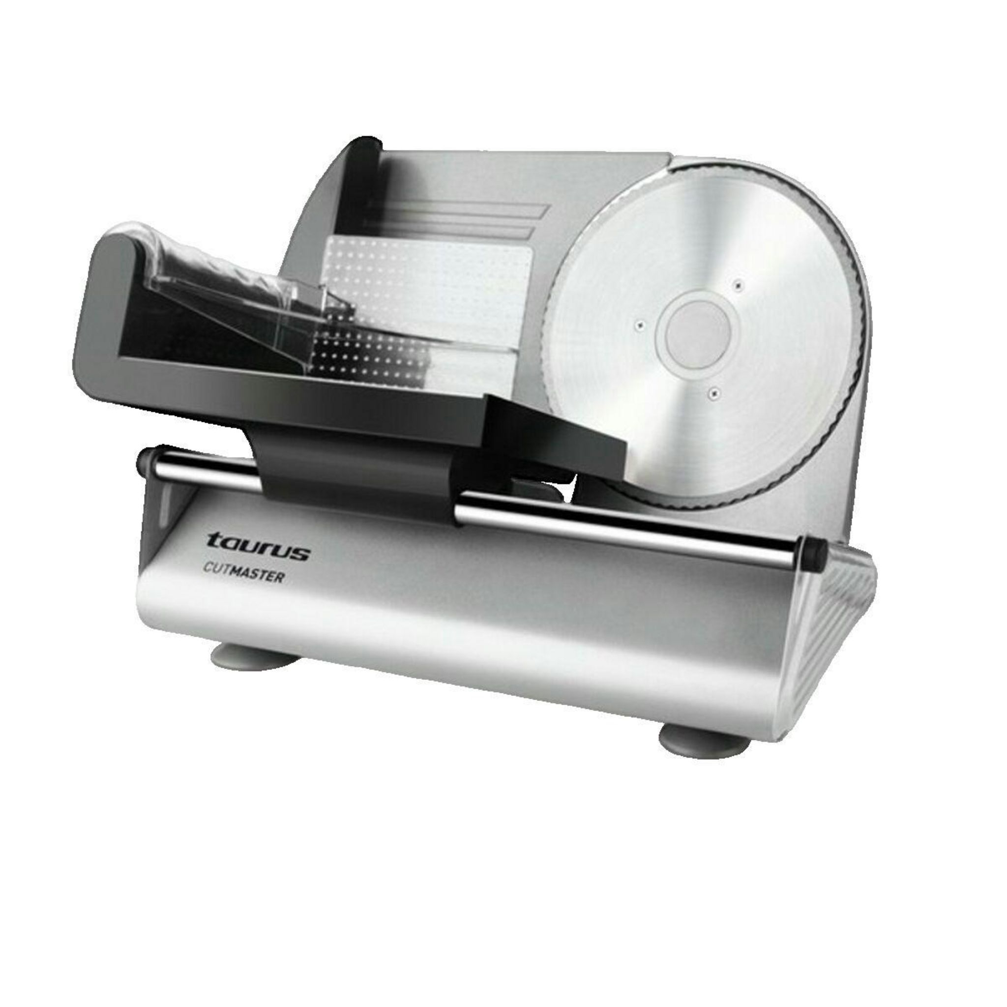 Découvrez la trancheuse Taurus Cutmaster 915511000, un petit appareil de cuisine électrique idéal pour trancher viandes, fromages et pains avec précision. Elle est équipée d'une lame en acier inoxydable de 19 cm garantissant des découpes nettes et uniformes, avec une épaisseur de tranche ajustable j