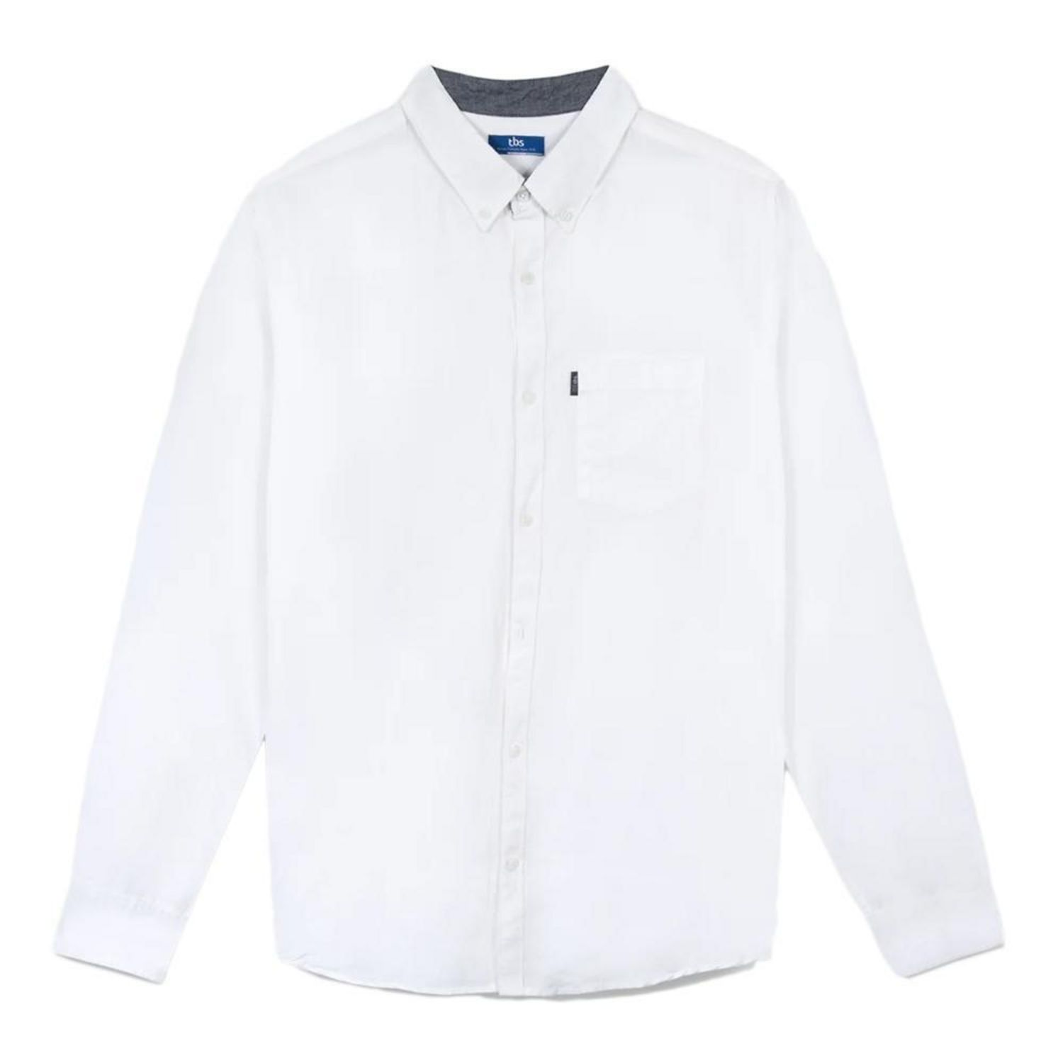 Chemise homme de la marque TBS !Manches longuesFermeture à boutonsColoris : Blanc1 pocheCol chemiseComposition : 55% Lin, 45% Coton
