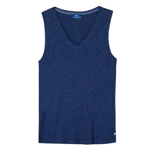Optez pour le débardeur de la marque TBS !Coloris : MarineCol VSans manchesComposition: 98% Coton , 2% Fibres Métalliques