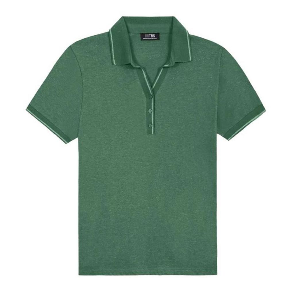 Optez pour le polo femme TBS !Manches courtesCol poloColoris : VertComposition : 98% Coton, 2% Fibres Métalliques