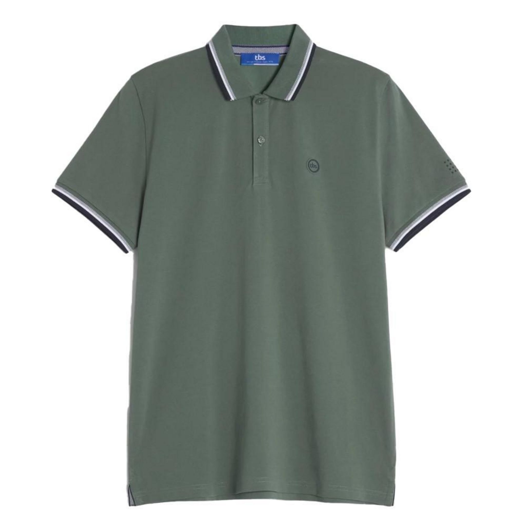 Polo homme de la marque TBS ! Couleur : Vert Coupe ajustée Manches courtes Logo TBS en caoutchouc Composition : 100% coton