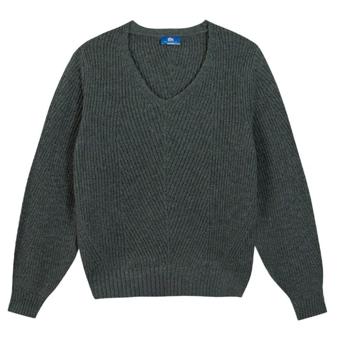 Pull femme de la marque TBS !Manches longuesCol VMaille côteléColoris : Vert/GrisComposition : 96% Polyester, 4% Laine